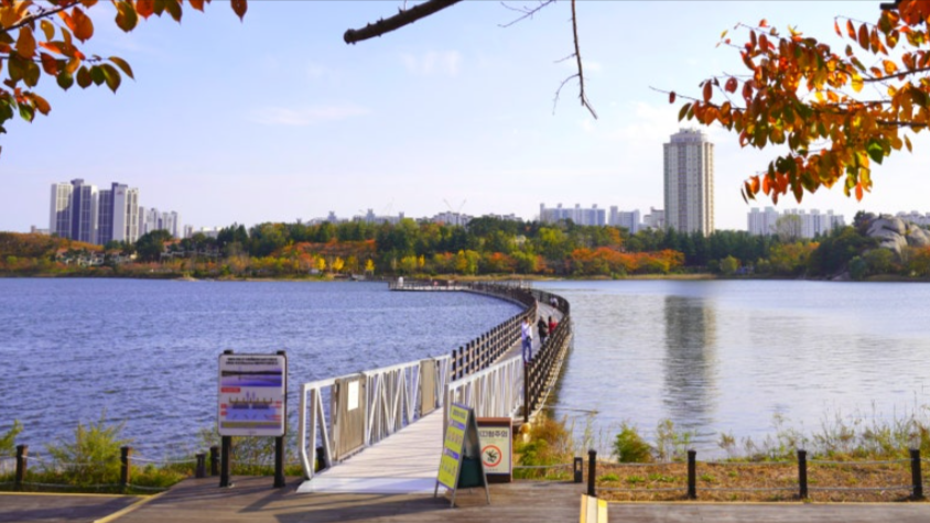 호숫가를 따라 조성된 길이 잘 정비되어 있어서 러닝, 산책, 자전거 모두 즐기기 좋습니다.