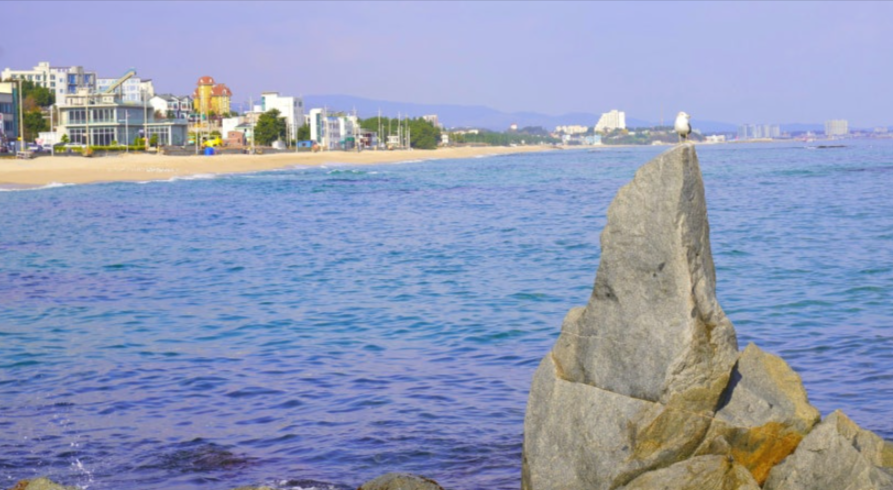 물회를 먹고 천천히 걷기 좋은 해변입니다.