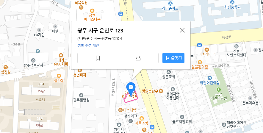 - 주차 : 광주힐병원 앞 도로 주차 가능(저녁 6시 이후·공휴일 여유 있음)