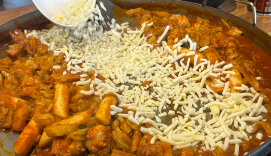 천천히 녹아내리며 닭갈비와 한 몸이 되는 장면이 일품이에요.