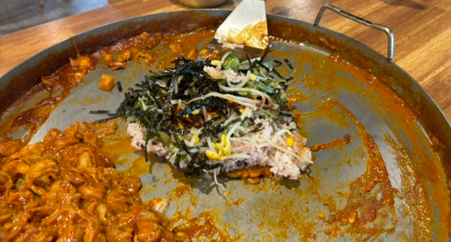 남은 양념에 밥·콩나물·김가루를 넣어 볶음밥을 주문했어요.