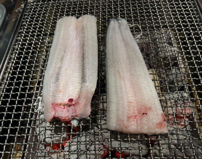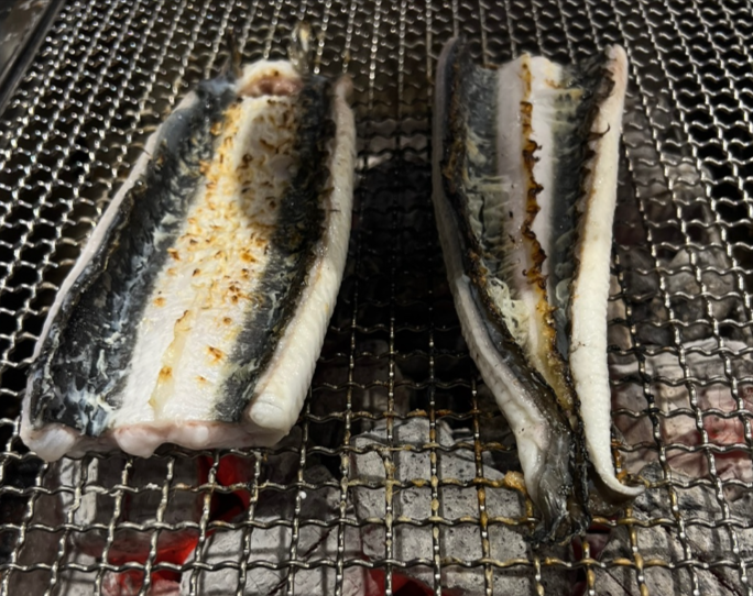 노릇하게 익은 장어를 세워 굽는 건