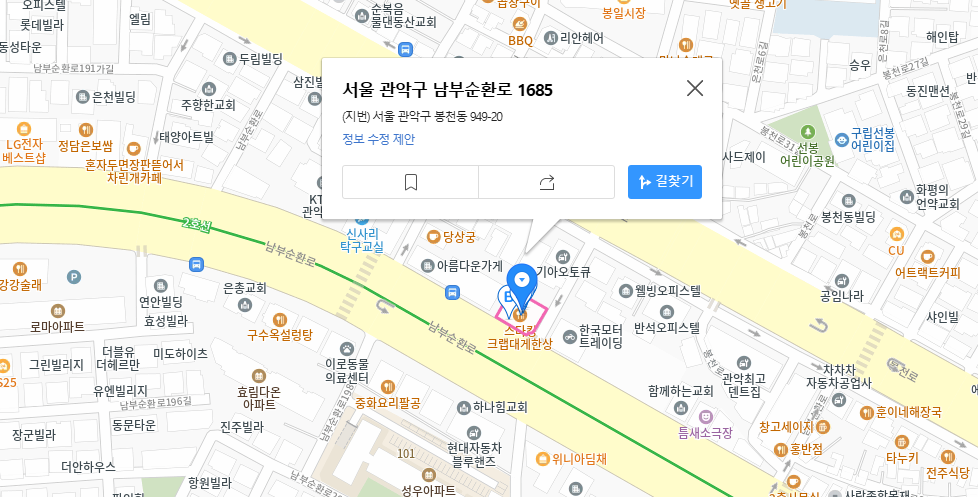 • 주소 : 서울 관악구 남부순환로 1685, 1층