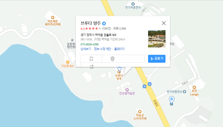 길가에 위치한 ‘브루다’를 발견했습니다.