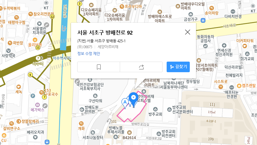 - 주소 : 서울 서초구 방배천로 92, 101동